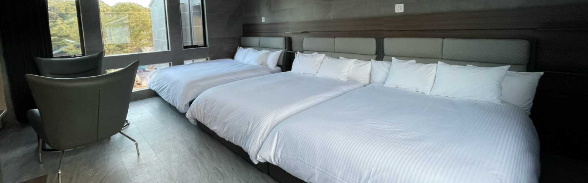 ベッド×3(クイーン×2、キング×1) クイーン幅:1500×長さ:2000 キング幅:1800×長さ:2000 プラフィーノオリジナルベッドで普通の規格より大きいサイズです。