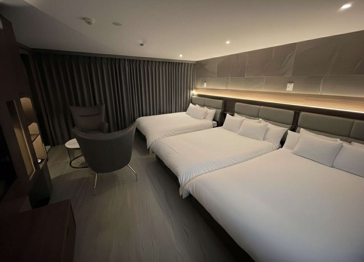 ベッド×3(クイーン×2、キング×1) クイーン幅:1500×長さ:2000 キング幅:1800×長さ:2000 プラフィーノオリジナルベッドで普通の規格より大きいサイズです。